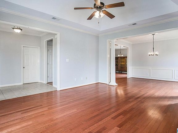 Great move in ready 3 bedroom & 2 bathroom home in Moody! This home features a tile foyer with coat closet & hardwood flooring throughout the living, dining and kitchen areas. Fresh paint throughout. Large living room w/trey ceilings & wood burning fireplace opens to the dining room w/decorative columns. Kitchen features an island, tiled backsplash, electric stove, dishwasher & fridge w/an eat in area as well as a keeping room perfect for an office or reading area. Large master bedroom w/trey ceilings features en- suite w/double vanity, soaking tub, separate shower & walk in closet. The 2 additional bedrooms share the hall bathroom with a tub/shower combo. Out back features a covered patio perfect for relaxing and overlooking the private & spacious back yard. Large 2 car garage perfect for parking and extra storage. Great location with only a few minutes to Moody Elem, 7 mins to I-20 & under 30 mins to Downtown Birmingham!