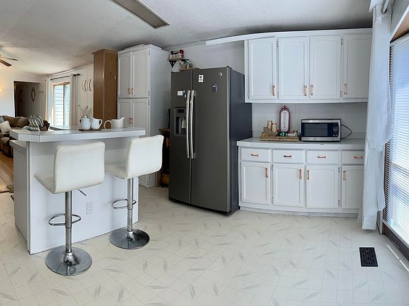 Move in ready 4 bed, 2 bath, 1994 mobile home in Kammerer Ct. Mobile Home Park! Lots of updates with new roof in 2022 and new furnace in 2023. Enjoy the open concept living space with main floor laundry and primary bedroom ensuite. All appliances included. There's a large fenced-in yard with shed and comfortable deck. Bedroom addition, now being used as a full dressing room, is attached. If remaining in Kammerer Ct., must be approved by Park. Buyers agent must have license to sell/show mobile homes on leased land. Cash preferred or pre-qualified buyer. Low $300/month lot rent.