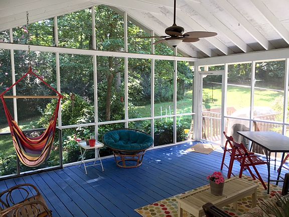 4 bedroom, 2 1/2 bath home: large screened porch, new energy efficient windows, Lennox dual zone remote HVAC, remodeled kitchen with Corian counters and SS appliances including gas stove. Hickory hardwood floors on main, newer carpet upstairs, gas fireplace, new tile and fixtures in all baths, Hardi plank solid color siding, 5' fenced and wooded backyard-perfect for kids and pets, finished basement rec room with new easy clean flooring.