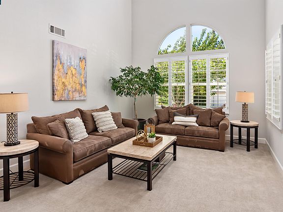 Spacious living & exceptional upgrades abound in this Crystyl Ranch legacy home featuring two primary suites, an office, multiple living spaces, and 3-car garage! Situated in one of Concord’s most desirable neighborhoods near many great hiking trails. Fresh neutral tones, newer Berber-style carpet, upgraded lighting and tile flooring anchor the downstairs living spaces; newer wood floors throughout upstairs common spaces. Beautifully upgraded chef’s kitchen features white shaker style cabinets, quartz countertops with large island, subway tile backsplash, 6-burner Thermador gas cooktop, Sub-Zero refrigerator and Sub-Zero wine fridge. Spacious primary suite boasts cathedral ceilings with no living space above, gas fireplace, view of private rear garden and upgraded en suite bath with double vanities, soaking tub, upgraded lighting, and spacious walk in closet with built-ins. Kitchen/Family combo is flooded with morning light and overlooks private, hardscaped backyard with fresh sod and gorgeous views of the Mt. Diablo foothills. HOA dues: $93/month includes clubhouse, community pool, tennis and pickleball courts, play structure and more. Top Rated Schools: Highlands Elementary, Pine Hollow Middle School, Northgate High School
