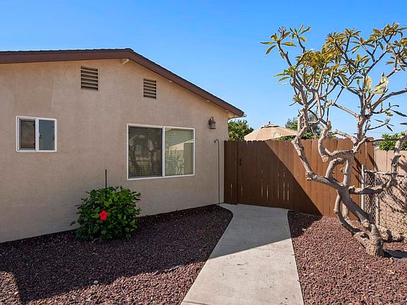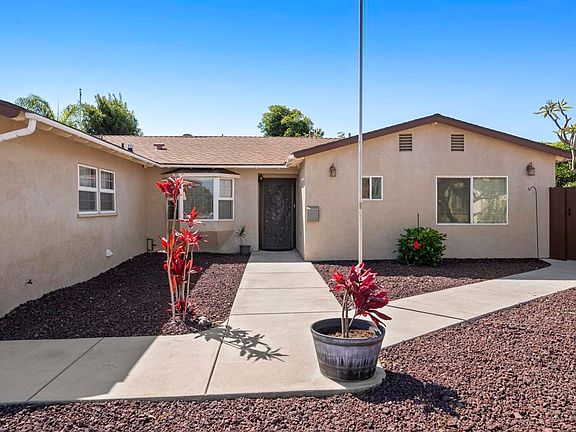 Beautiful home!Three bedroom, two bath single story home in Cul-de-sac in the City of beautiful Chula Vista!The primary dwelling has a possible studio within the existing space(primary bedroom) with a separate entryway.The property has a backyard offering endless possibilities of an additional unit, you have the opportunity to tailor the space to your lifestyle, interests, and aspirations, creating a multifunctional and enjoyable outdoor environment. This property seems to offer a blend of modern amenities (such as Corian countertops, built-in appliances, and custom paint) with practical features like handicap-accessible bathrooms, a private entrance for the primary bedroom and a variety of fruit and nut trees in the yard. The exterior is well-equipped with privacy fencing, custom walkways, and a focus on low-maintenance landscaping, making it a private oasis. Additional features of the home include. Kitchen-Corian countertops, kitchen Island, Handicap Features include-custom access to the garage. The Hall bathroom has a Bath/shower combo, handicap accessible grab bars. Master bathroom: Handicap accessible shower with grab bars and detachable shower head. Additional Features: Central heat and air conditioning, Ceiling fans, spacious bedrooms. Exterior Features: Many beautiful fruit trees, Flowers: Various types. Peach tree, Lime tree, Macadamia nut tree, West side:, Persimmon tree, Mission fig tree, Kidoda fig tree, Fruit trees:, Naval orange tree, Meyer lemon trees, 2 avocado trees, Apricot tree, Rosemary plant, 2 rain barrels Additional Exterior Features: Privacy fence, Custom walkways, Low maintenance, drought-friendly landscaping, Extra irrigation, Gutters, 3 sheds. Close to schools ,freeways and dining.