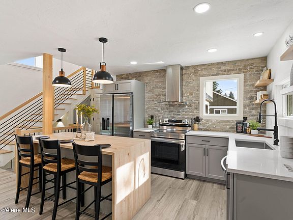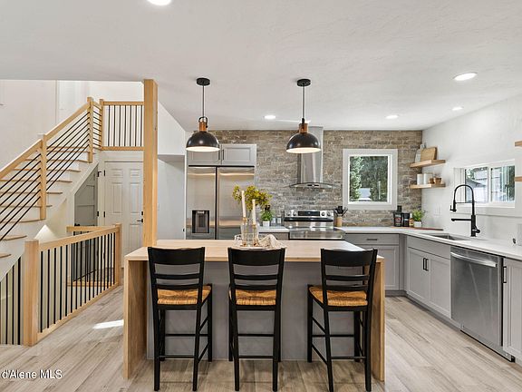 $25,000 INSTANT EQUITY. (appraised at $575k) Welcome to your dream home in Coeur d'Alene, Idaho! This stunning 4 bed, 3 bath home has been meticulously remodeled to perfection. As you step inside, you'll be captivated by the statement (& functional) fireplace that anchors the living room, creating a cozy and inviting atmosphere. The fireplace seamlessingly ties in to the jaw dropping kitchen, making it the heart of this home! The main level boasts a luxurious primary en-suite, providing ultimate convenience and privacy. Upstairs, you'll find two spacious bedrooms and for added flexibility, there is an additional bedroom on the lower level- offering endless possibilities: Think guest room, office or recreation space! With its modern upgrades and thoughtful design, this home is a true gem in the heart of Coeur d'Alene.