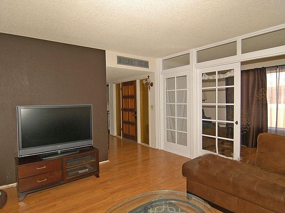 Your new home awaits you on a corner lot in the desirable community of El Dorado Townhomes. The welcoming entry has attractive security doors. Step inside to a large great room with wood-look flooring. French doors lead you to a convenient den. Also features brand new water heater, newer lighting, updated master bathroom, spacious bedrooms, skylights, ceiling fans and a newer dishwasher. Heating/AC new in 2015. Garage has been added for extra storage and security. Move in ready with washer, dryer and refrigerator included. Enjoy the mountain views from your covered patio (with a gas stub). Backyard has artificial turf that is perfect for sinking your toes (or your paws) into! Convenient community pool and clubhouse, easy access to restaurants, bus lines and shopping. A wonderful home!