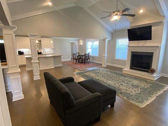 like new single-story brick home located in the "Heart" of everything. Constant appeal and elegant definitions are found in the "Hampton". This is a beautiful Stone Martin home in The Estates Neighborhood. Right on the Auburn/Opelika border, this home is only 2 miles from the Auburn Mall, 3 miles to East Alabama Medical Center, 4 miles to Tiger Town and just 5 miles to the University and downtown Auburn. This large open living room has vaulted beam ceiling, custom columns, and a beautiful custom fireplace with shiplap. Not to be missed is the large kitchen with custom cabinetry, upgraded SS appliances, and granite counter tops. The master bedroom is very private and hardwood floor.