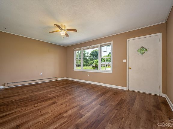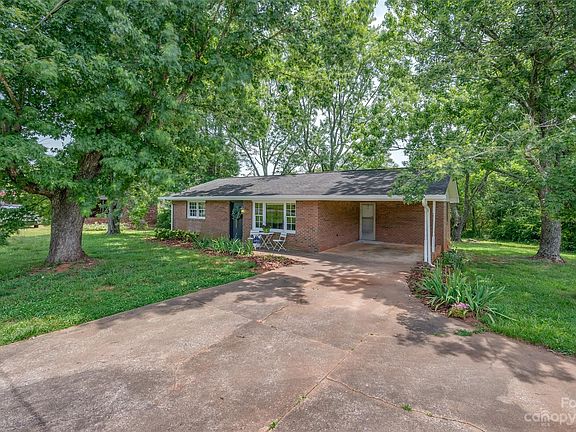 Tons of potential with this solid brick ranch in quiet area of Rutherfordton! Situated on a level lot w/beautiful, towering hardwoods, small concrete patio area and shed for storage. Kitchen offers tons of cabinet storage. Living room, family room/dining room w/wood-burning fireplace insert, plus spacious sunroom. Carpet has just been updated in both bedrooms & easy care luxury vinyl plank in the living room & family room.