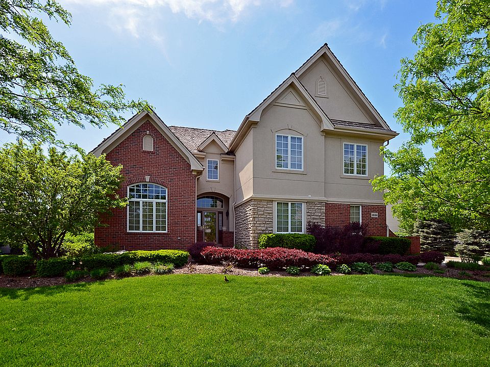 No expense has been spared with this exceptional all-brick Middleton model that is tastefully decorated, loaded with upgrades, and overlooks a spacious beautifully landscaped courtyard area! Pride of ownership is reflected throughout this move-in ready property. Great curb appeal is just the start. Inside you are greeted by an impressive 2-story entry with curved bridal staircase. Rich hardwood floors and detailed finishes are present throughout. A beautiful island kitchen with eating area opens to the grand 2-story great room with fireplace. There is also a superbly done 1st floor study with volume ceiling and custom built-in cabinetry. The master retreat features a tray ceiling, luxury bath, sitting area and generous walk-in closet segmented into two sections. Other features include the full finished basement with full bath and loads of storage, 3-car garage, zoned hvac, whole house music system, a large paver brick patio, and much more. Truly an impressive home.