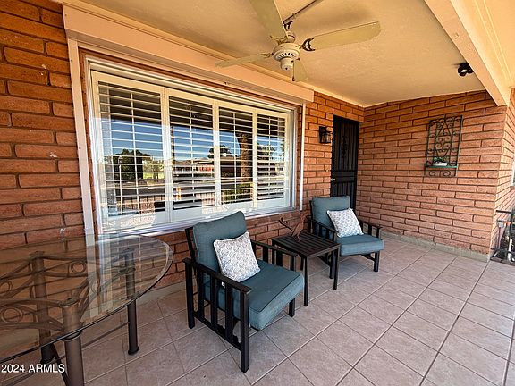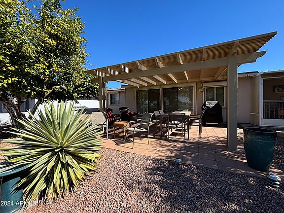 BEAUTIFUL GOLF COURSE PROPERTY! This is a popular 300 model with 2 bedrooms and 1.75 baths in Sunland Village, a 55+ Community. Pergola in backyard is the perfect place to watch the amazing AZ sunsets overlooking the golf course. Preferred location on golf course that gets very very few golf balls close to the property. Added Arizona room gives you more room to enjoy this home. Roller shields provide heat barrier and window protection. This home is move in ready. Sunland Village has many community amenities, events and activities for all interests. Buyer to pay $1925 Common Property Maintenance Fee.