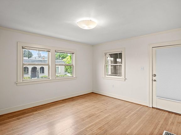 This is a wonderfully refurbished vintage apartment in the central eastside with a huge deck off of the bedroom, panoramic unobstructed 180 degree view. Newly refinished oak floors, beautiful kitchen with eating area and gas cooking, full sized appliances. This is a lovely corner apartment sitting up off the street terrific condition, classic usable floor plan, with the huge deck and unobstructed 180 degree city view looking at downtown and west hills. Good sized living room, large bedroom, lovely refinished bath. Available May 1, view now. Laundry and bike storage on ground floor of building $1000 refundable security, NO PETS OR SMOKING PLEASE, FIRM Add $75 for water/sewer/garbage/hot water charge. Please reply with a bit about yourself and best time to view. Thanks Tenant contribute $75 per month for water/sewer/garbage/hot water in addition to base rent, then electricity and gas heat and cooking billed direct from individual meters for each apt.