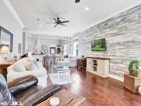 PLEASE NOTE: 1717sqft IN THE MAIN HOUSE. TWO SPACIOUS BEDROOMS WITH A SHARED BATHROOM. SHOWER HAS A LARGE STEPIN SHOWER. TOTAL sqft WITH THE GARAGE APARTMENT IS 2246. It has been said: At Cottages on the Green you are not coming home to a house, you are coming home to a lifestyle. Gated community with beautiful landscaping. Sidewalks troughout the subdivision. Centurally located two story clubhouse. Fitness center. Saltwater swimming pool with outdoor entertainment area. Cottages on the Green is located 5 minutes from OWA Theme Park and Tanger Outlet Mall. 20 minutes from sandy beaches. This home features zero lot line and well manicured lawn. 7Ft petitions on east and west side of the breezeway for optimal privacy while you are watching football. Main house has two bedrooms and 1 bath. Wood countertops and wood floors troughout. Custom farmhouse solid wood cabinets. Solid wood farmhouse style custom doors for bedroom and bathroom. Stainless appliances in the kitchen and gas stove.. Garage apartment is equipped with a washer/dryer and working kitchen. Loft for additional sleeping and sliding barn door on bathroom. Private balcony located on north side of the apartment. Spacious two car garage (24x26) with door openers. Very easy to view. Call your agent today.
