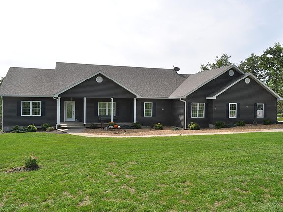 Just north of Buffalo, MO along State Hwy 64 and bordered on the east and west by county roads is this beautiful custom built walk-out basement home with just under 80 acres primed to be a beautiful cattle operation. Located close to Bennett Springs Park, the setting offers plenty of shade due to the aged walnut trees surrounding the house and circle drive. Built in 2002 with 7 BRs, 5 -1/2 BAs, the open floor plan can easily accommodate large family gatherings inside + offers 2 large screened-in porches for outside enjoyment without the bugs. This large home features tilt-in thermopane windows, 6 panel interior doors, custom cabinetry, hardwood floors, a large open Kitchen with modern appliances including a trash compactor + 2 separate sinks, a separate room off the Master Suite complete with Hot Tub, a large Wet Bar in the Basement, an oversized 2-car Garage and a high efficiency geo-thermal HVAC system. All 3 Bedrooms on the Main floor have their own private baths and the 4 Bedrooms in the basement share 2 Full Baths. The home's wrap-around porch gives you a great view of 2 of the four recreational stocked ponds on the south and east. A beautifully rustic wooden barn located along the drive complete with antique hay grapple and pully system provide for a great setting. Cattle-tight barbed wire fence surrounds the property with several cross fences and electric rotational grazing fence on the west 40. Stewart in-ground concrete waters are serviced by their own well separate from the home. This wonderful farm has plenty of grass and is ready for horses or cattle, or if someone is looking for a beautiful home and setting with plenty of privacy and nature.
