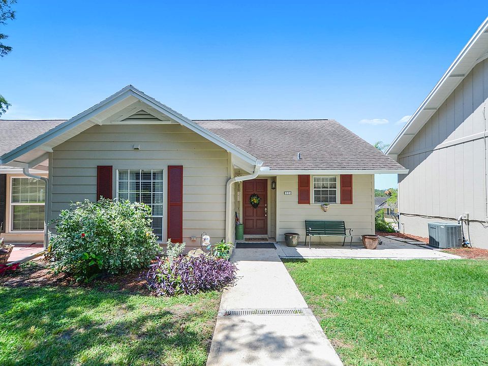 Prepare to be impressed! This charming two bedroom, two bath Villa has been meticulously updated and cared for. Nestled in the rolling hills and lush landscape of the Villas you will find this adorable home. Enter the home from the front patio overlooking the beautiful flower garden. Inside you will find a lovely kitchen with granite countertops, beautiful wood cabinets, stainless steel appliances and breakfast bar. As you enter the great room notice the beautiful new laminate wood plank flooring, vaulted wood plank ceiling, new lighting and sliders out to the enclosed sunroom. The spacious master bedroom has new laminate wood plank flooring, ceiling fan and gorgeous en suite bathroom newly renovated with vanity, countertop, sink, faucet, mirror and tiled walk in shower. Bedroom two has new laminate wood plank flooring with ceiling fan. New addition to the home is the stunning sunroom with vinyl pane windows which slide to open and tiled floor. Updates to home include A/C installed 9 months ago, electric updated 9 months ago, 4" baseboards and new lighting. This home is move in ready and one not to miss! The Villas location makes it easy to get anywhere in Central Florida, close to the 429 with easy access to Orlando, Mt Dora and the theme parks.
