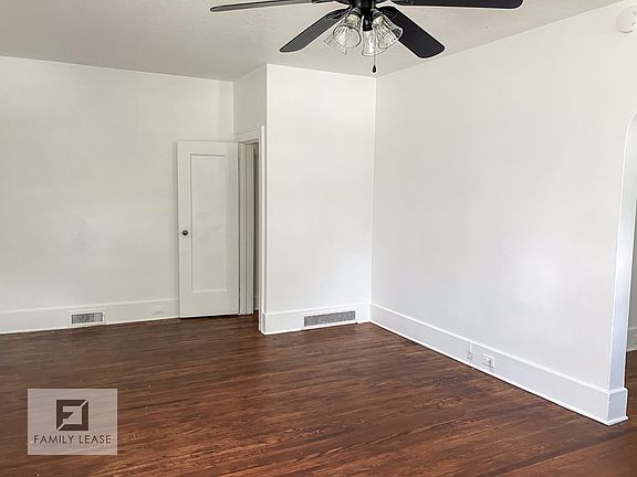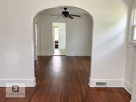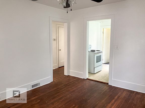 Cute first floor apartment. All new crisp white paint and lovely hardwood floors throughout. Bright and cheery living room with fireplace. Formal dining room. Kitchen features white cabinets and includes electric oven range and new fridge. 2 comfortable bedrooms. Attractive ceiling fans throughout. Bathroom has tiled floor, white vanity, and combo tub/shower. Central A/C and gas furnace. Shared coin op washer and dryer in the basement. Off-street parking in rear. Owner pays water and trash. Tenant pays all other utilities. Up to 2 pets allowed with a monthly $50 fee per pet. Please note, we DO NOT advertise on Craigslist or Facebook Marketplace.