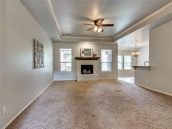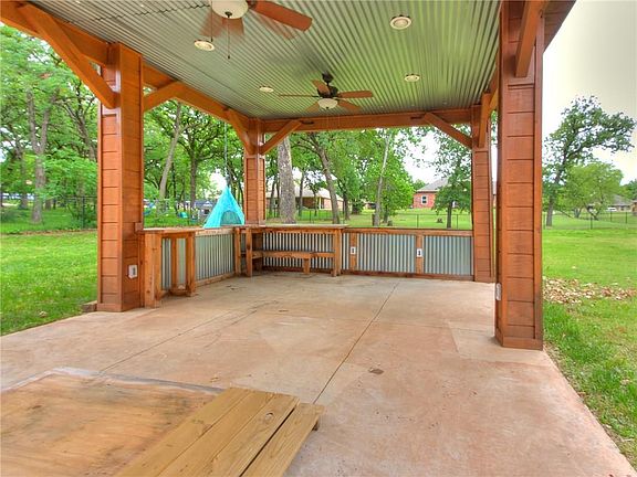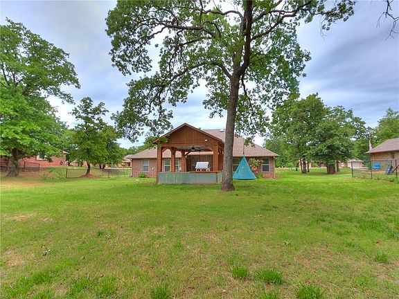 Edmond Schools! This beautiful home sits on a scenic half acre and gives you the solace of the county with the convenience of Edmond. Located in Hidden Oaks, this flexible open floor plan with 4 bedrooms,2.5 baths, AND a study has something for everyone! The amazing back patio was made for entertaining! Enjoy grilling with family and friends on the custom-designed covered patio with TV connections. The light and bright living room with a gas log fireplace adjoins the eat-in kitchen which is just off the beautiful outdoor living area. The extravagant master bedroom has a tray ceiling and offers an en-suite with double vanities, a soaking tub, and a huge walk-in closet. The guest rooms are spacious and have ample closet space The well-equipped kitchen has granite countertops and stainless steel appliances. This home has a storm shelter, laundry room, and 3 car garage! The neighborhood offers a nice playground, a basketball court, and access to the community pond.