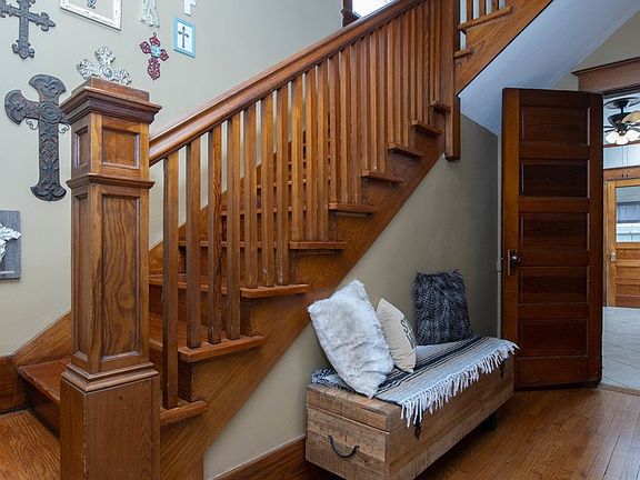 REFURBISHED WITH LOVE IS THE BEAUTIFUL HOME WITH OLD WORLD CHARM AND MODERN AMENITIES! THE ENTRY FEATURES OPEN STAIRCASE & MIRRORED COAT RACK. SPACIOUS LIVING ROOM WITH, LEADED GLASS WINDOW & HAND CARVED COLUMNS OPENING TO LARGE DINING ROOM WITH WINDOW SEAT AND ORNAMENTAL FIREPLACE (ORIG. COAL FPL). THE GALLEY KITCHEN HAS BEEN UPDATED WITH MODERN AMENITIES. OFF THE KITCHEN IS THE FIRST FLOOR LAUNDRY COMPLETING THE MAIN FLOOR. UPSTAIRS AWAITS 3 BEDROOMS FEATURING REFINISHED PLANK FLOORS AND UPDATED FULL BATH. PRIVATE BACK YARD AND 2.5 CAR GARAGE COMPLETE THIS HOME. MOST WINDOWS REPLACED, WTR HTR 2019, CA 2017. CINCH HOME WARRANTY.