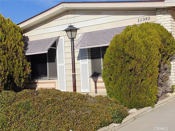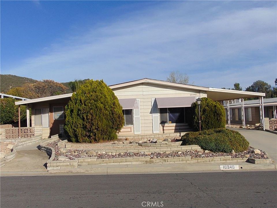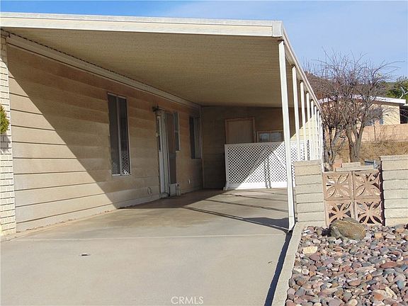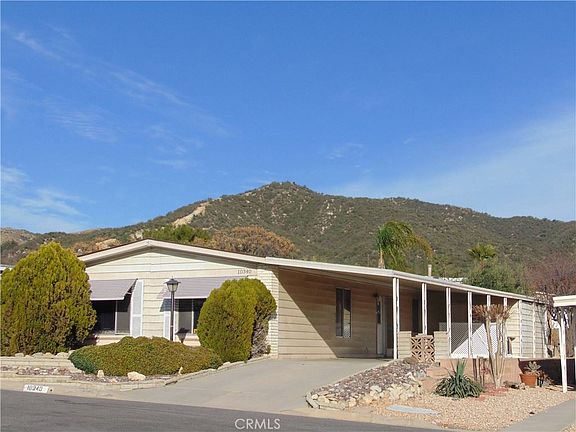 Desirable 55+ senior community in Cherry Valley. You own the land just like a house. View of the mountains. 433 permanent foundation. Newer carpet and roof. Front entry through a screened in sun porch, Separate living room, combo dining area and built in hutch. Kitchen features dual sinks, pantry, gas stove top , some roll outs in cupboards, and breakfast counter. Open to a larger family room with individual vanity desk area and storage. Built in wet bar with wine rack, sink, and shelves. Sliding glass door to enclosed front porch. Ceiling fans. Master bedroom has extremely large walk in dream closet with built in dresser in center, with mirrored outside sliding doors. Master bath has soaker/garden tub, separate shower, double sinks, built in lighted vanity and built in clothes hamper. Guest bath has pocket door from guest bedroom, dual seats in larger shower and walk through from individual laundry room. Laundry room has both 220 and gas dryer hook ups and washer hookups. Deep sink and storage. Exterior entrance to long covered carport. Shed/workshop at end of carport with lots of storage or work space. Yard features Grape vines, Apricot tree, apple tree, and plum tree. Purple Lilacs, built in brick BBQ, Needing a bit TLC for deferred maintenance yard and back patio, but oh what potential it has. Close to Interstate 10 Between Palm Springs and Redlands. Country living , yet close to shopping, schools, churches, hospital, food, medical offices, and easy access to other tourist attractions of all that Southern California has to offer. Association has pool, spa, club house activities, club house, billiard tables, card room, library, tennis court, 9 holes of golf year round, fishing at two separate lakes and more with low HOA's and no mellow roos. Must see inside to appreciate . Seller is motivated.