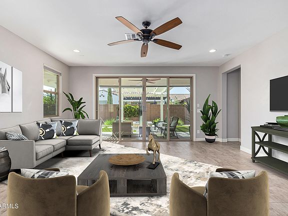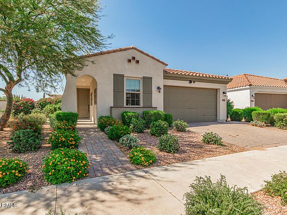 Discover this elegant corner lot home nestled in the highly sought-after Eastmark Community! Enter inside to an open floor plan that combines modern paint tones with wood-look flooring in the main areas. The room seamlessly opens up to an impressive backyard via a 4-panel sliding door. The beautiful kitchen features SS appliances, quartz counters, staggered wood cabinetry with crown moulding, and a large island w/breakfast bar. The main bedroom boasts custom carpet flooring and an ensuite with dual sinks, a step-in shower, and a walk-in closet. The gorgeous backyard is an entertainer's delight, showcasing a covered patio, an extended pergola with a cozy gas firepit, Travertine tile, synthetic grass, and a sparkling pool. To top it all off it has PAID OFF SOLAR. This home truly has it all! Contract cancelled due to no fault of the sellers. Property has gone through inspection and appraisal.