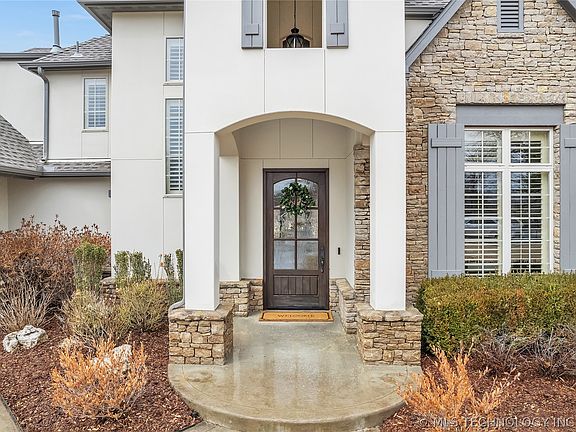 Gorgeous Custom Built home in gated community, The Estates at Stone Creek in Bixby school district on .73 acres, backs to greenbelt. Luxury outdoor living w SALTWATER POOL/spa/water feature (new pump 2022) covered outdoor living/kitchen bar w stainless appliances, TV, heaters, grill, fridge. Large attic space is wired for electric and ductwork in place for 5th bedroom (just needs flooring and walls). Beautiful chef's kitchen with walk in pantry. 4 bed (all beds have private full baths/Master & 1 guest bed down, 2 beds and 2nd living up), 4.5 bath, 3 car, 2 Living rooms, laundry chute, private office with built ins, WD & Fridge stay. Bixby schools, quick access to Hwy 169. This lovely retreat has it all!