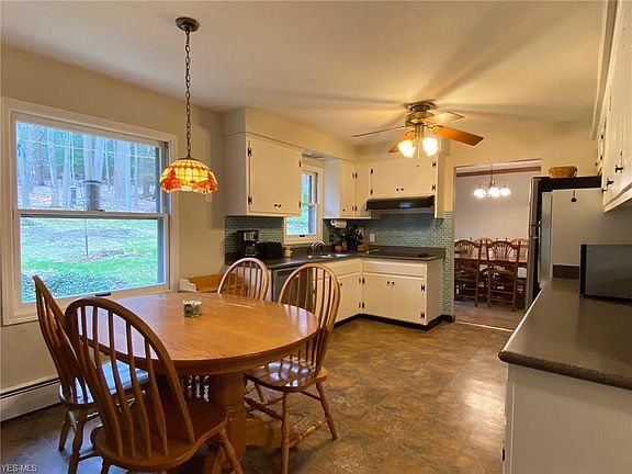 Spacious 4 Bedroom & 2 Full Bath Multi-level home set on 2.5 private acres! This home has been freshly painted with neutral decor. Covered front porch welcomes you into the Living Room open to Dining Room. Eat-in Kitchen with all appliances included. Upper level includes 4 bedrooms all with hardwood floors and full bath to share. Lower level Family Room with brick wood burning fireplace and new slider to backyard and patio. 2nd full bath has been completely remodeled with new vanity, fixtures, flooring and soaking tub. New Roof and gutters 2020. 2-car attached garage. Beautiful park-like setting with mature trees and lush plantings. Overlooks Fowlers Mill Golf Course. Chardon Schools.