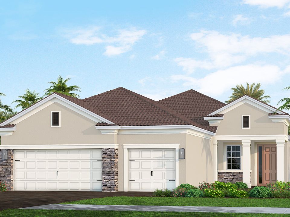 UNDER CONSTRUCTION- Bright Meadow at Grand Park on Homesite #112 - Estimated Completion Date - Late Fall 2022The Bright Meadow plan by Neal Communities is designed with those features most desired by homeowners. The foyer entry leads to a spacious and open family room. An open kitchen is situated off this area, complete with large walk-in pantry, gracefully curved island and breakfast nook. French doors from the great room open to the den. Glass sliding doors in the great room provide access to the roomy covered lanai. Besides the master bedroom with coffered ceiling the suite holds two walk-in closets and master bath with dual sinks, walk-in shower and water closet. Two secondary bedrooms each include a walk-in closet. This home currently under construction and available to purchase! No waitlist or bidding required. Call today to find out more and to schedule an appointment.