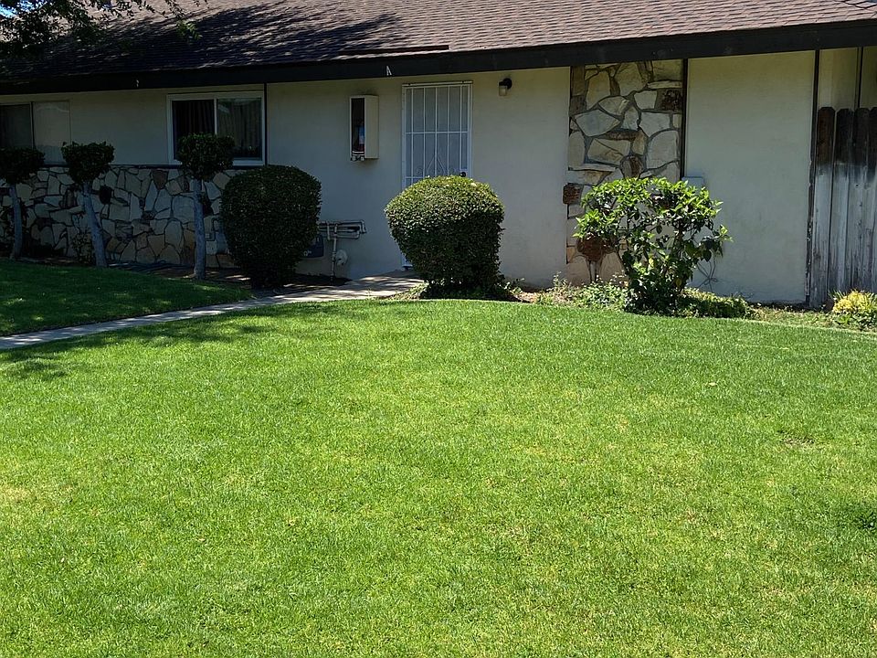 This is a one bedroom rear unit, very quiet and private on a nice tree lined street. It is in a 4 unit building that is all one level, with no one above or below you. It includes A/C, private patio, upgraded stove, newly painted and cleaned. It features carpeting in the living room and bedroom, with ceramic tile in the kitchen and bathroom. Very large bedroom with lots of closet space. Brand new quartz countertops in the kitchen, plus new ceramic tile shower walls and shower door in the bathroom. You also have a shared garage space with automatic garage door opener, plus an outside parking space right outside your front door. Conveniently located near shopping and dining. Owner pays water and trash. Renter pays gas and electricity. $35 per credit check. You must have good credit in order to apply. There is also a 1 year lease.