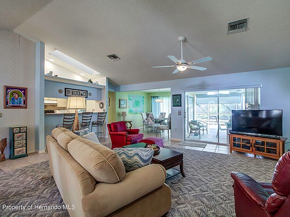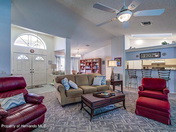 Beautiful and well-maintained 3 bedroom, 2 bathroom, POOL home in the desirable community of the Estates at Seven Hills, in Spring Hill. With its vaulted ceilings and open floor plan featuring multiple wall-to-wall sliders which wrap around a beautiful 28'x14' in-ground, sceened-in pool with a covered lanai, this home is perfect for both relaxing and entertaining. The home features a formal dining room or den, open concept living room, a kitchen complete with breakfast bar and another separate dining area, a large primary bedroom complete with en suite bathroom, 2 additional bedrooms, a second full bathroom, laundry room and spacious 2 car garage. New roof in 2016. Lawn irrigation system. Florida friendly landscaping. Neighborhood features street lights and sidewalks -great for quiet evening strolls. Located in the popular Seven Hills community with low annual HOA fees of just $230 a year. Very close to shopping, restaurants, medical facilities, public parks and recreation. Minutes to the Suncoast Parkway to get to Tampa International airport (40 minutes), or to Pinellas County to some of the best beaches in the country. Or stay local and enjoy Weeki Wachee Springs and take in the glorious sunsets at Roger's Park and Pine Island. Come and see!