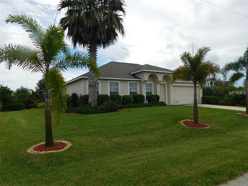 This hard to find single story delightful 4 bedroom split plan with separate living room and family room. The gracious features of this home is a spacious kitchen with 2 pantries and two double sinks. The Master Bath has garden tub in bathroom for relaxing, as well as a separate shower. Other items included are roll safe shutter for the french doors on lanai, clear & aluminum shutters, security lights, partial flooring in attic, slide out doors in wooden front kitchen cabinets, custom wood shutters in family room and kitchen. For the Pool and the outside of the home, there is an over sized lanai, two ceiling fans in the covered part of the lanai, an over sized lanai for entertaining or sunbathing (pool faces EAST lots of sunshine), pebble tech pool sundeck in pool which was built by Grant Pools, pool heater, fenced in back yard, sprinkler system with well,and last but not least the superb landscaping all around the home. Come live in South Gulf Cove, a boating community, boat ramp is less than five minutes from home to enter the canal system. You can also launch your boat at Boca Grande, El Jobean, Placida Road, your choice. Come look at this home and you will want to stay and live in Paradise with us!