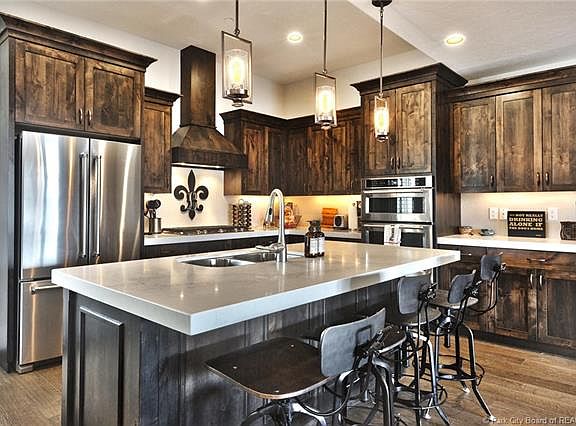 This home is amazing, bright contemporary finishes and views of Jordanelle and Deer Valley! The main level is perfect for entertaining, you'll enjoy the open layout with hardwood floors and the large stone fireplace with built in shelves and mantel. The kitchen features dark alder cabinets, quartz countertops, stainless steel kitchen aid appliances and a large oversized island. Walk out back to a covered patio with a gas line hookup for your bbq or out front to a large covered private deck. Master features dual vanities, walk in closet, large soaking tub with mountain views and separate water closet. The lower level bedroom is great for guests to enjoy their own space and features an ensuite bathroom. All window coverings, solar shades and shutters are included, high efficiency furnace, tankless water heater and extra storage throughout home.