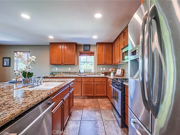 MOTIVATED Sellers! Located in the quiet gated community of Vintner's Grove, this 2 bedroom, 2 bath, 1,322sqft, end unit condo is ready to be called home! Park in the conveniently attached 2 car garage and Walk through the front door up the stairs and you'll be welcomed by an open floor plan with plenty of natural lighting. The kitchen is equipped with stainless steel appliances, granite countertops, a large island with seating, new recessed lighting, and a new ice maker in the fridge. Enjoy a beautiful Mountain View out of the kitchen window that overlooks the super sized courtyard. The large private side patio is perfect for entertaining, children at play or pets to enjoy. The dining room and living room have waterproof luxurious vinyl flooring and a switch operated fireplace, perfect for warming up in the winter without turning on the heater. Down the hallway you'll find a large laundry room and both bedrooms and bathrooms. The master suite has a large walk-in closet and the attached master bath has a standing shower with rainfall shower head, separate soaking tub with jets, and dual sinks. The HOA features a pool, playground, clubhouse, and grilling and picnic area. Located near Ontario Mills and Victoria Gardens this home is in a prime location to enjoy a fun day out and a cozy night in.