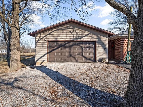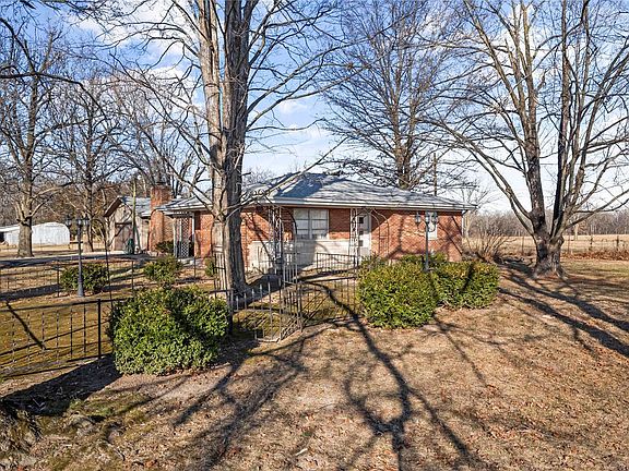 Far out, but not too far out is this adorable ranch home on 1.04 acres just outside of Red Bud. This 2 bedroom, 1 full bath has many things to offer to it's new homeowner. Nice sized living room w/windows, including an additional side entry door. Home originally had a breezeway & attached garage. In the early 90's the area was converted to a dining room & family room w/gas fireplace, recessed TV area and lots of storage cabinetry. Kitchen cabinetry was replaced w/oak at that time also. Oversized detached 2 car garage was added in 2014, featuring concrete flooring, electric and is also equipped w/partitioned work shop area. Kitchen appliances replaced approximately 10 years ago. Main floor laundry with washer/dryer to be included. HVAC (2018), Roof (2016). Home was recently surveyed & staked out for your convenience. Home has outside back patio for your evening enjoyment! Well cared for and just needs some updating!
