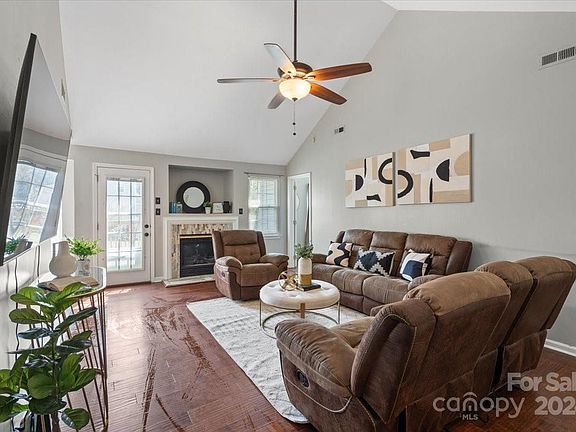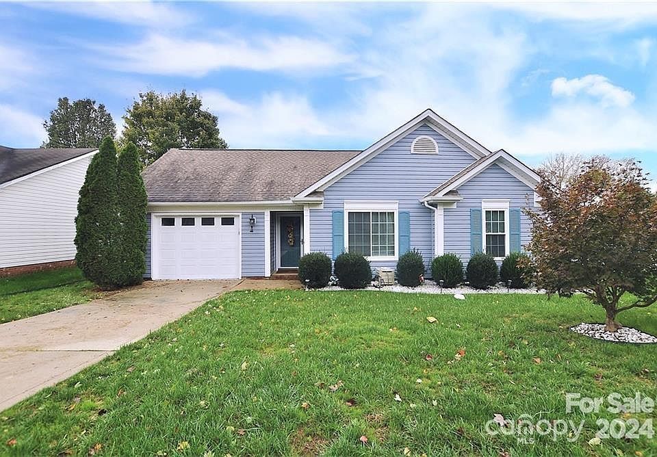 This ranch home is an absolute gem, both inside and out! The remodeled kitchen is stunning, featuring slow-close white cabinets, granite countertops, backsplash, and modern fixtures. The eat-in dining area is conveniently located next to the kitchen and opens to the living room with a vaulted ceiling and a fireplace. The spacious owner's suite easily accommodates a king size bed, has a walk-in closet, a vaulted ceiling, and updated bathroom with quartz countertops and tiled shower. The secondary bedrooms and guest bath are located on opposite side of the home. Situated on a beautifully landscaped, large corner lot with a fenced yard and a storage shed. No HOA and super easy access to I-485 for a quick commute!