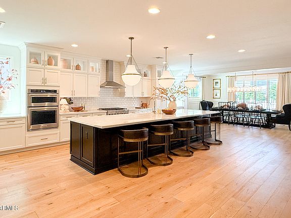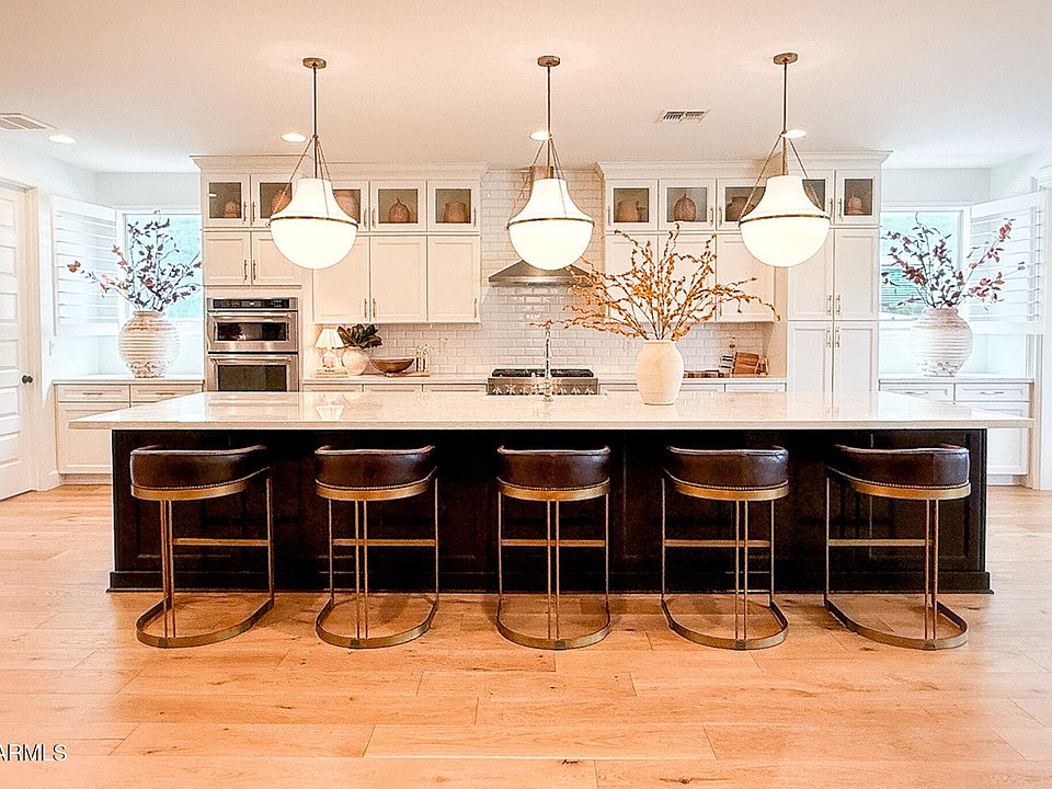 The heart of the home is a chef's dream, anchored by premium KitchenAid appliances, including a gas range, built-in microwave with a second full oven, dishwasher, and fridge with silver and wood interior details. The 15 foot quartz island is a showstopper ready for hosting all your gatherings. You'll have ample storage with beautifully designed cabinetry and walk-in pantry.