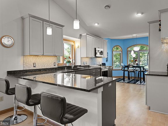 ONE LEVEL LIVING in Woodbury! This beautiful twin home features a brick exterior and fantastic location. Upon entering you will notice the hardwood floors, vaulted ceiling, custom kitchen & appliances and open concept living. This kitchen is perfect for entertaining with lot's of storage and a coffee / wine bar! The living room stone stack fireplace is perfect for the cool fall days, relax with a cup of coffee or entertain friends. Enjoy the screened porch on one of our beautiful warm Minnesota summer nights. Making your way around the home you will notice a family room / den, 3/4 guest bathroom & large guest bedroom. The large owner's suite features an updated 3/4 bathroom with dual sinks & custom walk-in closet. Amazing opportunity for one level living in Woodbury.