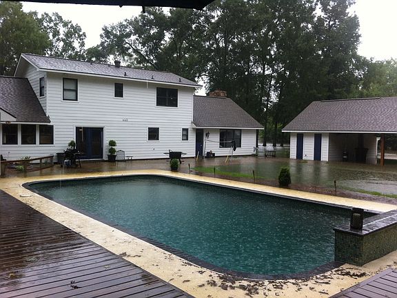 This home is on 2 Acres with a fenced yard, double gate, 3 car carport, pond, and 20 x 40 in-ground gunite pool. Roof is about 5 years old and exterior hardie planks and facia are less than 2 years old. Concrete Septic Tank is less than 1 year old. House flooded during August 2016 floods, but has been gutted, treated, and sanitized.