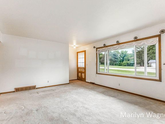 Looking for a solid home loaded with potential! Here it is! This 3 bedroom ranch home is nicely situated on almost an acre of country side property in the BYRON CENTER school district. Everything is on the main floor - 2 bedrooms have been combined for a huge master bedroom, main bath w/jetted tub, main floor laundry & 1/2 bath, nice size living room, spacious kitchen w/lots of cabinets & snack bar. Dining room slider opens to a patio with expansive views of the country side! Semi-finished basement had a sump pump failure in 2021, now replaced and added battery back up with no problems since per Seller. Basement was professionally mitigated and is ready to be refinished with potential for a 4th bedroom/office, large rec room & lots of storage. New roof! ANY/ALL offers due by 9/15 at 10am