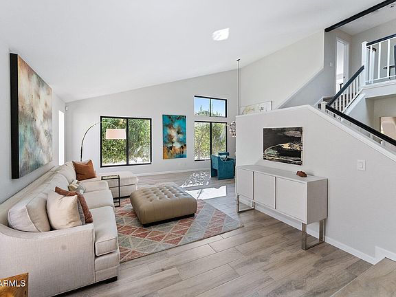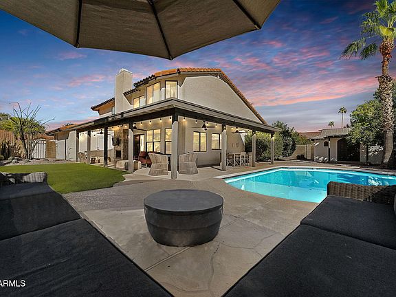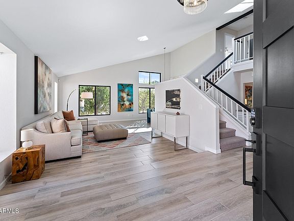 Welcome to your dream home in the desirable Bent Tree community of Central Scottsdale. This beautifully remodeled 4-bedroom, 2.5-bath residence features a 3-car garage, pool and a meticulously landscaped lot, all with no HOA. Step inside to discover a light-filled interior with soaring vaulted ceilings and brand-new Milgard high-performance black-framed windows, creating an inviting and modern atmosphere. Every detail of this exquisite remodel has been thoughtfully designed, ensuring a luxurious living experience. The chef's kitchen is a culinary delight, showcasing a Thermador induction cooktop, double ovens, sleek white cabinetry, and elegant Caesarstone countertops. It's the perfect space for entertaining or enjoying family meals. Outside, a charming updated storage building with .. electricity and lighting offers endless possibilities. Transform it into a gym, art studio, or craft space to suit your hobbies.