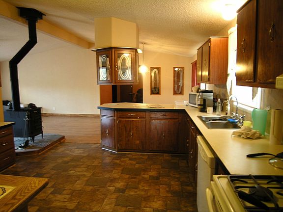 HUGE Mt & valley views from deck of Pinon Hills home. Borders open space & open space borders BLM. Open floor plan; wood stove will heat home; Private master suite w/walk-in closet & garden tub. Big workshop; 2 Stg sheds; Private back area w/enclosed hot tub