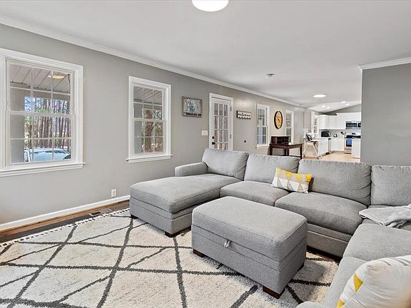 Spacious updated ranch with an amazing covered front porch. Situated on a private wooded lot with almost an acre. 2 bedrooms and 2 full bathrooms. Newer roof, laminate flooring, tile flooring, paint and updated bathrooms (2021), HVAC (2019). The Open Kitchen features SS appliances, bright quartz countertops and a gorgeous backsplash. Great space for entertaining! No HOA! Easy commute to anywhere from 401. Proximity to downtown Fuquay (about 5 minutes)/Holly Springs/Lillington/Angier. Sellers connected the home to city water.