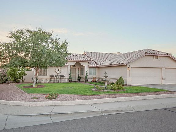 We have an accepted offer.. waiting to open escrow Monday. Great 4 bedroom, 2 bath home with pool, 3 car garage, RV gate and no HOA! Split floorplan. Inviting entrance with vaulted ceilings. Separate living and family rooms. Formal dining area. Large master bedroom with vaulted ceilings. Master bath with dual sinks, separate shower and garden tub and walk-in closet. Bright, open kitchen with stainless steel appliances, breakfast bar, pantry, and eat-in dining area overlooking the pool. Brazilian cherry wood floor in family room and hallway. Fireplace. Plant shelves. Wood blinds. Perfect backyard with sparkling pool, covered patio, fruit trees, grass and privacy! This will not last long! See today! High school is zoned Centennial or Peoria.