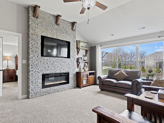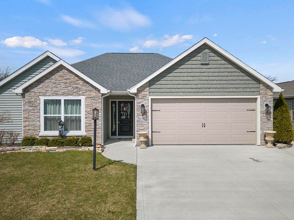 Welcome to this lovely New Haven villa built by Heller Homes, the Alexa Model, with nearly 1,500 square feet of open living space, 10’ ceilings, 3 bedrooms, and 2 full bathrooms! Enter through the foyer into a open concept floor plan with an added electric fireplace in the living room. The kitchen is a chef’s delight with laminate countertops, tiled backsplash, soft close cabinets doors & drawers, a 7’ long island with breakfast bar, a primary pantry AND an additional lovely 6'x5' walk-in butlers pantry with outlets inside for the 2nd refrigerator. All appliances stay and are currently electric but have the option to be switched to gas with the available hookup. The primary bedroom features a private en-suite with a 5’ walk-in shower and walk-in closet. Both other bedrooms also feature walk-in closets and ceiling lights. This newer home also has customary PEX plumbing for its age, a gas 96% efficiency furnace, an electric water heater, and double hung windows (for easy cleaning). The attached 2-car garage has been upgraded to include a pull-down ladder for attic entry and includes a recently floored attic space. The large Black and Decker storage bins and smaller Coleman storage bin can stay. Don't miss the bright LED lighting and pegboard on the garage walls, which is perfect for organizing tools and equipment. The villa also offers an oversized wider driveway, improved landscaping, and a sidewalk that goes from the driveway down the East side of the house to the upgraded 14'x13' patio in back with a pergola that can stay with the house too, which is perfect for entertaining on your spacious cul-de-sac lot! The garbage bin sheds, landscaping pots, and outdoor statue can also stay with the house. Live simply knowing that gutter guards are installed and that all landscaping and snow removal is being taken care of for you. HOA fees are $325/year and the mowing, snow removal, and landscaping costs are $312.50/quarter. Seller is requesting 30 days of possession after closing. Don’t miss this opportunity to own this beautiful villa in Greenwood Lakes, a highly desirable location with convenient access to parks, schools, I-469, and the Maplecrest extension.