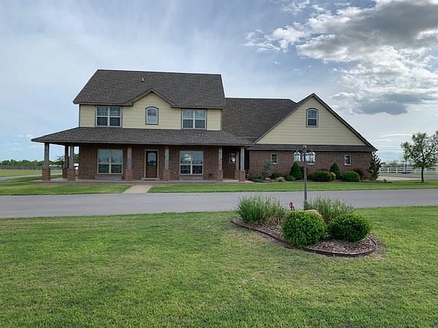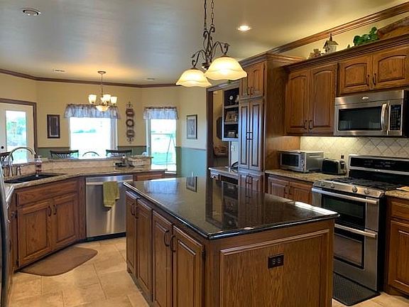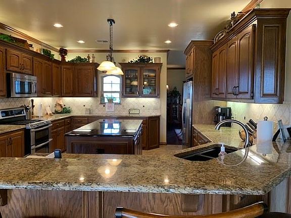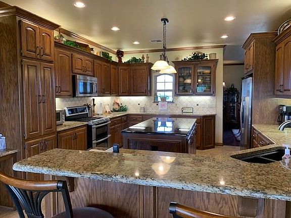 Located in the Copper Ridge Addition...Large 2 story beautiful country home setting on 5 acres mol. This truly is a must see. Wood flooring, crown molding, granite counter tops. Geo thermal heating and cooling 6' walls stained concrete siding, hail resistant roof. This home has 4 bedrooms 3 bathrooms. Gorgeous master suite with huge master bath with a walk in shower and a whirlpool tub and a large walk in closet. Outside 60X40 shop 16 foot lean too storm shelter inside the garage. Storage to die for truly too much to describe. Qualified buyers only.
