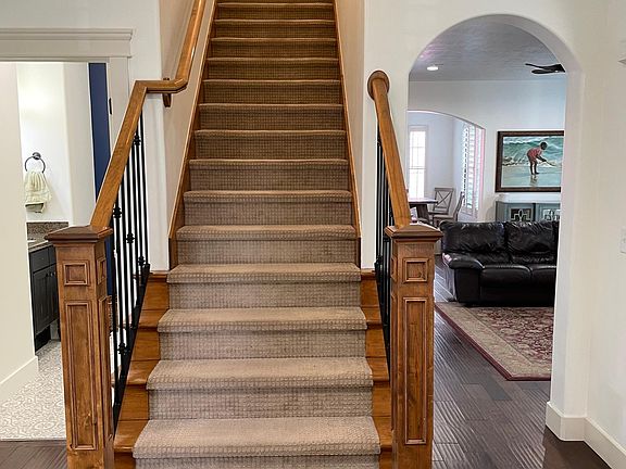 Former model home in Daybreak. This home features a large kitchen/great room built for entertaining with many cabinets for storage. It also has a walk in pantry. The owners suite (separate shower and jetted tub and two walk in closets) is upstairs. There are also two additional bedrooms with adjoining jack/jill bathroom located upstairs. Two bedrooms with walk-in closets and a adjacent bathroom are downstairs. The home also comes with a furnished theater room with surround sound. The basement has built in wet bar with a mini fridge, a wet bar, and a very spacious storage room with tons of built in shelves. The home also has a large wrap around porch and a covered breeze way to an large garage two car double deep (4 car). The home also has a large well manicured 1/4 acre yard (raspberries, tulips, magnolia trees, maples, linden trees. The home is occupied and will be available June 15th, 2022. Application, excellent credit, and proof of income and proof of deposit are required prior to showing. Tenant pays HOA $132 (which includes access to pools, community center and high speed fiber internet to the home), sewer, water/trash, power, gas, TV. Small dogs 30 pounds or less @ pet rent of $50 per month per dog limit of two. The yard is fully fenced. Tenant are expected to maintain flower beds adding mulch annually, lawn free of weeds meeting and exceeding HOA standards. No Cats. No Smoking, vaping, or recreational drug use.