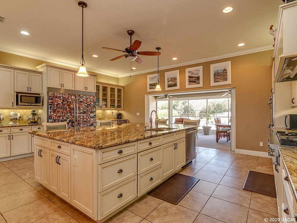WOW!! This home boasts CLASS!! All the upgrades one would want plus on 1 acre of land. This 3 bedroom 3 bath home with an office or den is like no other floor plan out there. The open concept is truly open here. Anywhere you are in the house you are not left out. The kitchen is a chefs dream. A massive Island with granite counter tops and 2 sinks is ideal for prepping your food or entertaining. The fridge is oversized stainless steel, The gas stove heats up in a flash with water access right above it. The double oven is a must at holiday time. The kitchen leads right in to an open formal dinning room and then to a large living room with grand windows that have plantation shutters and offer lots of natural lighting. The sliding glass door and screens on porch disappear to allow the outside court yard to all be part of the house. A party truly like no other here. The outside court yard has a fountain with firepit, outside kitchen with grill and sink all for your enjoyment. The pantry on this home is enormous. You can store anything you want in here. The laundry room is large and also has an office inside of it. The den or 4th bedroom can be a man cave, she shed, playroom or office. The master bath is stunning.