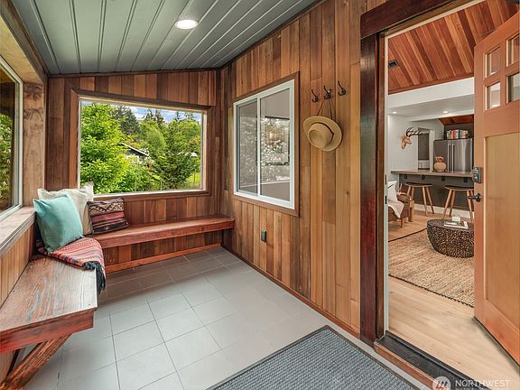 Have you ever walked into a home and felt like you never wanted to leave? This is that house. A stunning Northend craftsman, reimagined with modern style, warm wood accents, and designer-selected finishes. The kitchen is a dream—anchored by a 36" professional range, farmhouse sink, custom concrete counters, and hand-made Clé tile. Wide plank floors, new Milgard windows, and upgraded systems like tankless hot water and a heat pump with AC offer comfort and ease. A 200 sq ft bunkhouse adds charm and versatility. Step outside to a covered Tigerwood deck and dining area, perfect for summer evenings. The level, sun-filled lot features a fire pit, privacy hedges, and electric gate—your own private retreat just minutes from the Seattle ferries.