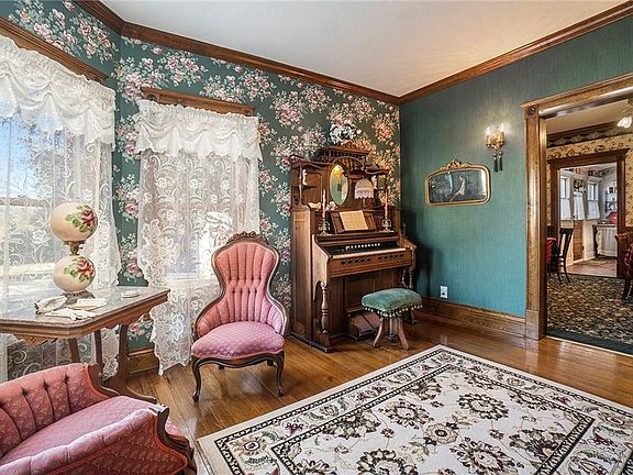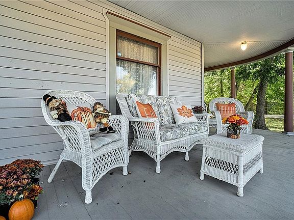 You'll find undeniable vintage charm blended with modern conveniences in this Victorian-style bed and breakfast, dating back to the early 1900s with a complete renewal in 1995. Ideal for a personal home or investment, this property stands proudly on a picturesque acre corner lot with lush trees and gently flowing creek. Plenty of areas to enjoy the outdoors with a sprawling front wrap around covered porch, side covered porch, screened porch and back deck. Step inside to find a richly preserved 2 story home with double stairway, 5 bedrooms, 5 full and 1 half bath. The basement is finished with a walk up exit to the exterior and has a 2nd full kitchen, family room, 2 additional non-conforming bedrooms and a full bath. A two car garage with a 17 x 32 loft was added in 2016. Located within close proximity to Baker University, this expansive property offers versatile opportunities for prospective buyers. With the opportunity to purchase as furnished, spacious layout, multiple bedrooms/suites, and ample communal spaces, it presents an ideal setting for rental for university students, or continue to use as a bed and breakfast. Currently licensed as a lodging establishment and a special use permit has been issued from the city to be used as a tea room and sight for events such as weddings, etc. The main kitchen is setup for and has been used as a licensed commercial kitchen in the past.