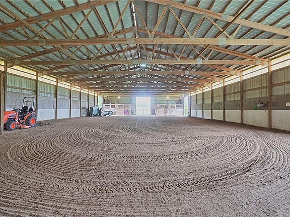Self-proclaimed "Honey-Do Acres" this sprawling, meticulously maintained 5 acre horse farm is the epitome of "move-in" ready. The winding asphalt driveway (2018) invites guests to a palpable sense of peace and serenity, mature trees line the acreage offering a sense of privacy. The impressive 60x140 (1998) Cleary Equine Stable has been diligently maintained offering up to 11 stalls, updated electric (grounded) & exterior lighting (2015) motion lights (2020), water access within barn. Outdoors, the 60ft round pen is ready for riding/training, all pastures offer 2in electric fence (2015) and "no climb" gates (4 total). Inside the home, the floor plan is unexpectedly spacious and offers a split bedroom design with a generously sized primary bedroom and two spacious additional rooms. Kitchen boasts black stainless fridge & range, pantry, upgraded casement window overlooking the acreage. Sliding door in dining room, leads to new composite deck with pergola and hot tub (conveys). Roof & siding (2015) New exterior doors on garage (2020) Insulated garage w/overhead storage. Propane heat (filled 60%) with heat pump backup (located within crawlspace-easy access in garage). Additional property information attached via MLS.