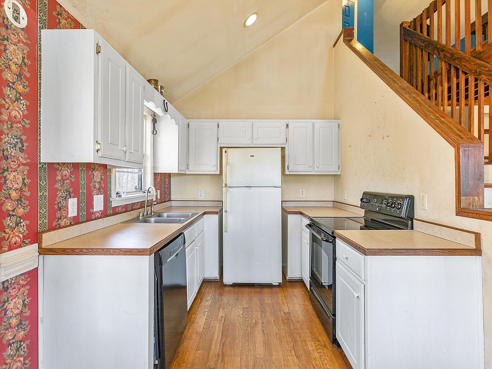 This gem was built by current owner! Completely custom and SO unique.This A-frame home has two bedrooms downstairs and one bedroom up, including a loft! The open floor plan inside, complimented by a giant covered front porch, allows for endless entertainment opportunities! Quaintly situated on ~1.4 acres, surrounded by woods and field... this property feels like a vacation home! There's SO much potential with this property-come make it your own!