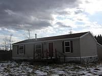 Doublewide in fair condition on over five acres of land. Roof has no leaks. Living room has an area for a woodstove. Master bedroom has full bath and two closets, two other bedrooms and second full bath. Laundry room off the kitchen. Block foundation, drilled well, septic system. Detached two-car garage. Short sale, subject to third-party approval.