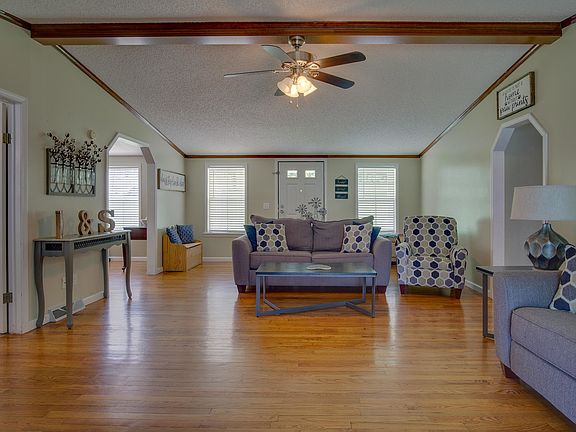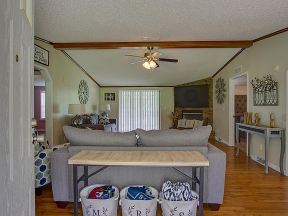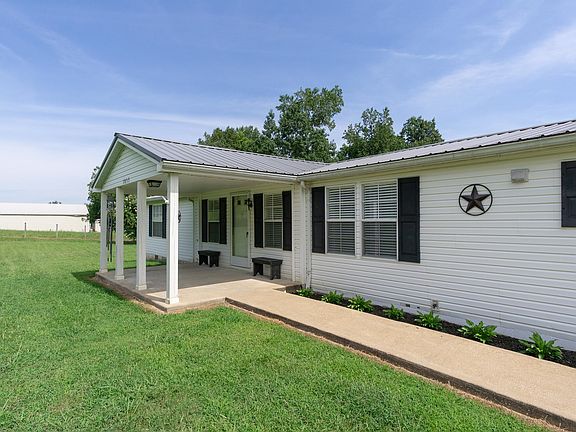 Well maintained manufactured 3 BR/2.5BA, permanent foundation with metal roof on.2.7 acres. Property also has a large fenced in back yard with a large garage/shop area (30x40) with electric wiring & RV hookups. Home has quality finishings such as hardwood and tile flooring and slate counter tops in kitchen. Appliances remain with the home including shop fridge and TVs in LR and 2 BRs. (70 in, 65in & 55in). Newly sealed driveway.
