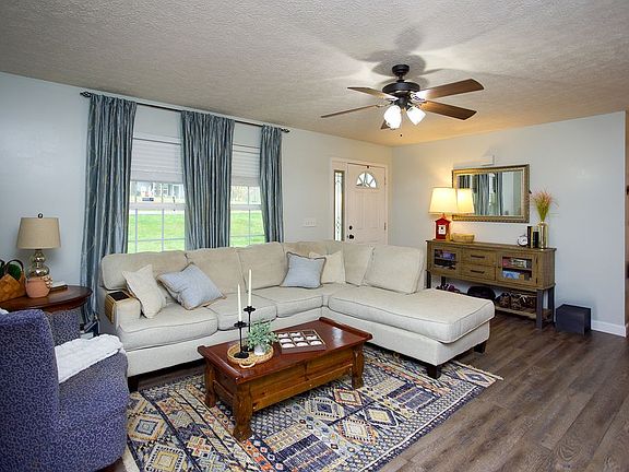 Welcome to your new home! This charming 3 bedroom, 2 bath residence is situated on a beautifully level 1-acre lot, offering both space and privacy. Mature trees line the rear of the property, creating a serene backdrop and natural seclusion. Enjoy evenings around the backyard firepit—perfect for entertaining or relaxing under the stars. Step inside to an inviting open-concept layout that seamlessly connects the living, dining, and kitchen areas, ideal for modern living. The master suite features a recently updated tile shower, adding a touch of luxury to your daily routine. The storage building is included with the property, providing convenient space for tools, equipment, or hobbies. Whether you’re looking for peaceful country living or a place to host family and friends, this home offers the best of both worlds.