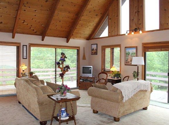 Mountain living at best!! Great views from inside and outside this home. 3 bedrooms, 3 baths, large living area with floor to ceiling brick fireplace with gas logs but can be woodburning if desired. Downstairs you have living space with outside entrance which could be a bedroom, game room or family room plus a full bath and workshop area or storage. Lots of natural light inside this home for that cozy mountain feel. Spacious deck space for outdoor living and entertaining. New A/C unit and storm doors installed last year. Garden space with abundant fruit trees and grapes surround the home on the outside. Additional 650 sq. ft. in partial finished walkout basement & workshop. Short distance, quarter of a mile to scenic New River. Enter through this gated subdivision but seller does not pay any homeowners dues. Newer roof and water heater installed in 2013. Needs some updating but very sound home.